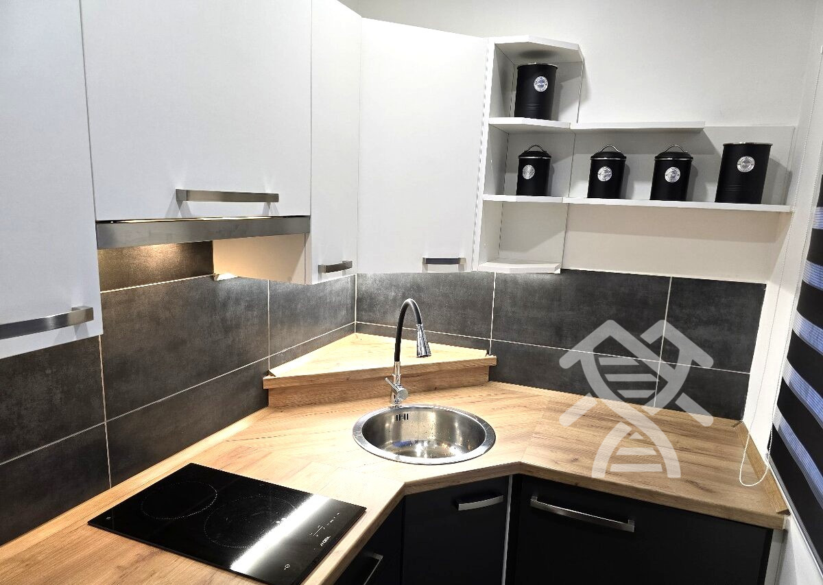 V zastoupení majitele si Vám dovolujeme nabídnout byt o dispozici 1+kk, 27 m2 ve 4NP panelového domu. Byt nyní prošel kompletní rekonstrukcí (nové rozvody elektřiny, zděné jádro, nové deskové radiátory, internetová přípojka, plastová okna, sádrokartonové stropy, odpady, podlahy, nové rozvody vody aj.). Byt je dispozičně řešen - chodba se vstupem do koupelny, která je spojena s toaletou , dále vstup do hlavní obytné místnosti se vstupem do kuchyňského koutu. Koupelna je spojena s toaletou a sprchovým koutem, je laděna do moderních tmavších dřevěných tónů, s místem pro pračku pod umyvadlem (pračka není součástí prodeje). V celém bytě je nová podlahová krytina. Kuchyňský kout je řešen kuchyňskou linkou do tvaru L na míru od truhláře s vestavnými spotřebiči (menší lednice, dvouplotýnkový sklokeramický vařič, mikrovlnka a trouba). Byt se prodává bez vybavení (komoda, stolek, tv stolek, pohovka, televize, pračka). Vchod do bytu je vybaven novými protipožárními dveřmi. V bytě chybí dodělat interiérové dveře (záleží na domluvě co bude kupujícímu vyhovovat). Na oknech jsou nové žaluzie den a noc. K bytu patří komora, která je umístěna na chodbě. Bytový dům nedávno prošel revitalizaci se zateplením a novou fasádou. Parkování před domem, v okolí domu je veškerá občanská vybavenost. Výhodou jsou nízké náklady na bydlení. Vhodný i k investici. Pro více informací kontaktujte makléře. V případě potřeby Vám zajistíme financování naším smluvním partnerem..