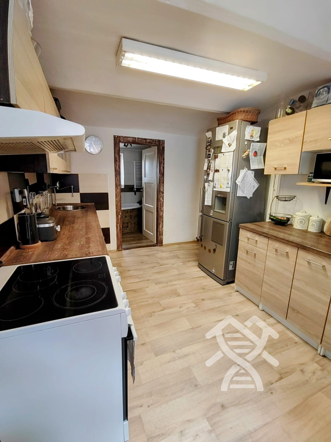 V zastoupení majitele si Vám dovolujeme nabídnout dům o dispozici 4+1 o podlahové ploše 108 m2, ležící na pozemku o velikosti 1225 m2 v obci Ostré u Úštěka. Dům je po částečné rekonstrukci (plastová okna, vyvložkovaný komín, elektroinstalace v mědi, podlahové topení v obývacím pokoji a koupelně, nová koupelna, tepelné čerpadlo, aj.). V přízemí domu se nachází předsíň, ze které vejdete do chodby se vstupem do patra. Obývací pokoj nabízí příjemný prostor k relaxaci s krbovými kamny. Z obývacího pokoje je vstup do menší dětské herny. Kuchyně má zánovní prostornou kuchyňskou linku, která nabízí dostatek pracovního prostoru, se samostatně stojícím sporákem a myčkou. Z kuchyně je vstup do koupelny. Koupelna je nově obložená, s rohovou vanou, spojená s toaletou. Dále je zde vstup do spodní ložnice. V patře se nachází další dva prostorné obytné pokoje se střešními okny s krásným výhledem do okolí. Vytápění je řešeno pomocí tepelného čerpadla nebo krbovými kamny v obývacím pokoji. Součástí domu je i prostorná garáž o podlahové ploše 25 m2. Po schodech v garáží se dostanete nahoru do patra, které slouží jako odkládací prostor. Tento velký prostor můžete s vhodnými úpravami předělat na další obytnou místnost o podlahové ploše 43 m2 a připojit ji ke stávající obytné ploše domu, probouráním vchodu z jedné z podkrovních místností. Ze zadní strany domu jsou dva prostorné pískovcové sklepy. Celková plocha domu tedy činí 202 m2. Na pozemku se dále nachází tři kolny. Zahrada u domu je prostorná, zezadu domu mírně svažitá. Zahrada je rozdělena na několik částí, dvorek se zámkovou dlažbou před domem se dvěma parkovacími místy, dále na část s bazénem a trampolínou a nakonec na část k pěstování zeleniny. Obec Ostrá u Ústěka je známá díky poutnímu místu Kalvárie. Dům je, ale vhodně umístěn zcela bokem od případných turistických návštěv Kalvárie. V blízkosti se nachází město Úštěk, kde je veškerá občanská vybavenost (školka, škola, lékaři, úřad, pošta, restaurace, bankomat aj.) Dům je v dojezdové vzdálenosti větších měst jako Litoměřice, Roudnice nad Labem nebo Česká Lípa. Pro více informací kontaktujte makléře. V případě potřeby Vám zajistíme financování naším smluvním partnerem..