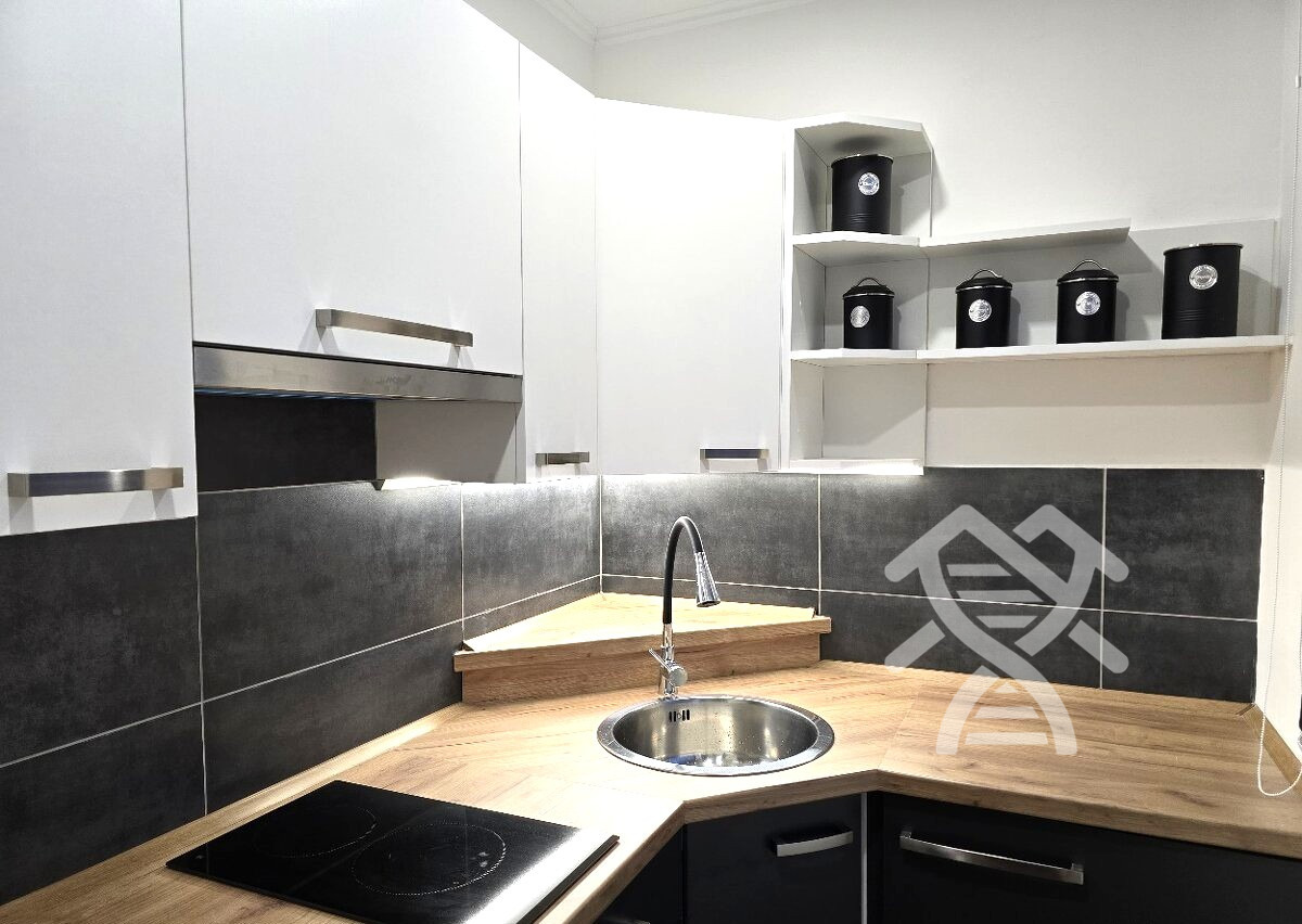 V zastoupení majitele si Vám dovolujeme nabídnout byt o dispozici 1+kk, 27 m2 ve 4NP panelového domu. Byt nyní prošel kompletní rekonstrukcí (nové rozvody elektřiny, zděné jádro, nové deskové radiátory, internetová přípojka, plastová okna, sádrokartonové stropy, odpady, podlahy, nové rozvody vody aj.). Byt je dispozičně řešen - chodba se vstupem do koupelny, která je spojena s toaletou , dále vstup do hlavní obytné místnosti se vstupem do kuchyňského koutu. Koupelna je spojena s toaletou a sprchovým koutem, je laděna do moderních tmavších dřevěných tónů, s místem pro pračku pod umyvadlem (pračka není součástí prodeje). V celém bytě je nová podlahová krytina. Kuchyňský kout je řešen kuchyňskou linkou do tvaru L na míru od truhláře s vestavnými spotřebiči (menší lednice, dvouplotýnkový sklokeramický vařič, mikrovlnka a trouba). Byt se prodává bez vybavení (komoda, stolek, tv stolek, pohovka, televize, pračka). Vchod do bytu je vybaven novými protipožárními dveřmi. V bytě chybí dodělat interiérové dveře (záleží na domluvě co bude kupujícímu vyhovovat). Na oknech jsou nové žaluzie den a noc. K bytu patří komora, která je umístěna na chodbě. Bytový dům nedávno prošel revitalizaci se zateplením a novou fasádou. Parkování před domem, v okolí domu je veškerá občanská vybavenost. Výhodou jsou nízké náklady na bydlení. Vhodný i k investici. Pro více informací kontaktujte makléře. V případě potřeby Vám zajistíme financování naším smluvním partnerem..