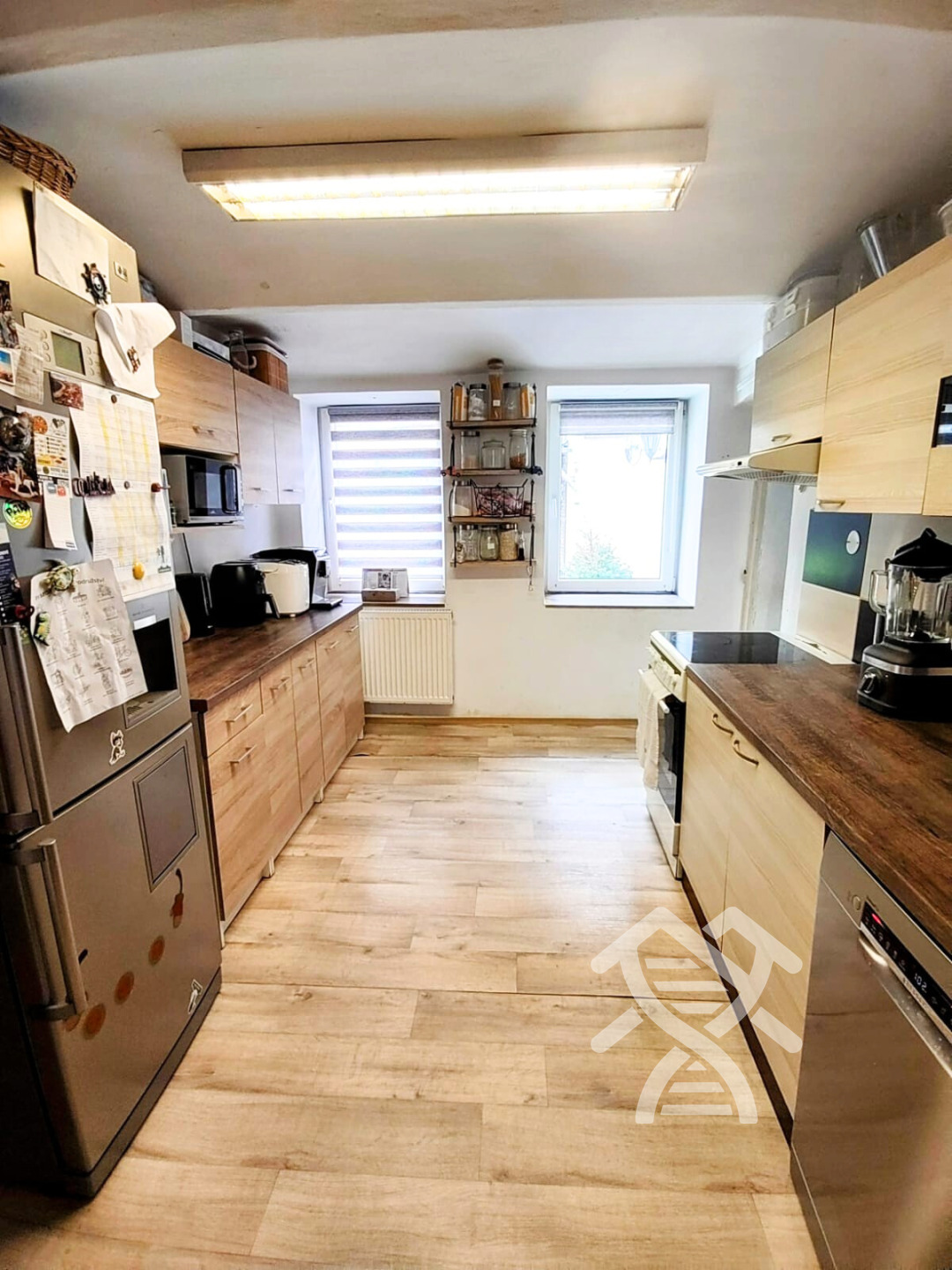 V zastoupení majitele si Vám dovolujeme nabídnout dům o dispozici 4+1 o podlahové ploše 108 m2, ležící na pozemku o velikosti 1225 m2 v obci Ostré u Úštěka. Dům je po částečné rekonstrukci (plastová okna, vyvložkovaný komín, elektroinstalace v mědi, podlahové topení v obývacím pokoji a koupelně, nová koupelna, tepelné čerpadlo, aj.). V přízemí domu se nachází předsíň, ze které vejdete do chodby se vstupem do patra. Obývací pokoj nabízí příjemný prostor k relaxaci s krbovými kamny. Z obývacího pokoje je vstup do menší dětské herny. Kuchyně má zánovní prostornou kuchyňskou linku, která nabízí dostatek pracovního prostoru, se samostatně stojícím sporákem a myčkou. Z kuchyně je vstup do koupelny. Koupelna je nově obložená, s rohovou vanou, spojená s toaletou. Dále je zde vstup do spodní ložnice. V patře se nachází další dva prostorné obytné pokoje se střešními okny s krásným výhledem do okolí. Vytápění je řešeno pomocí tepelného čerpadla nebo krbovými kamny v obývacím pokoji. Součástí domu je i prostorná garáž o podlahové ploše 25 m2. Po schodech v garáží se dostanete nahoru do patra, které slouží jako odkládací prostor. Tento velký prostor můžete s vhodnými úpravami předělat na další obytnou místnost o podlahové ploše 43 m2 a připojit ji ke stávající obytné ploše domu, probouráním vchodu z jedné z podkrovních místností. Ze zadní strany domu jsou dva prostorné pískovcové sklepy. Celková plocha domu tedy činí 202 m2. Na pozemku se dále nachází tři kolny. Zahrada u domu je prostorná, zezadu domu mírně svažitá. Zahrada je rozdělena na několik částí, dvorek se zámkovou dlažbou před domem se dvěma parkovacími místy, dále na část s bazénem a trampolínou a nakonec na část k pěstování zeleniny. Obec Ostrá u Ústěka je známá díky poutnímu místu Kalvárie. Dům je, ale vhodně umístěn zcela bokem od případných turistických návštěv Kalvárie. V blízkosti se nachází město Úštěk, kde je veškerá občanská vybavenost (školka, škola, lékaři, úřad, pošta, restaurace, bankomat aj.) Dům je v dojezdové vzdálenosti větších měst jako Litoměřice, Roudnice nad Labem nebo Česká Lípa. Pro více informací kontaktujte makléře. V případě potřeby Vám zajistíme financování naším smluvním partnerem..